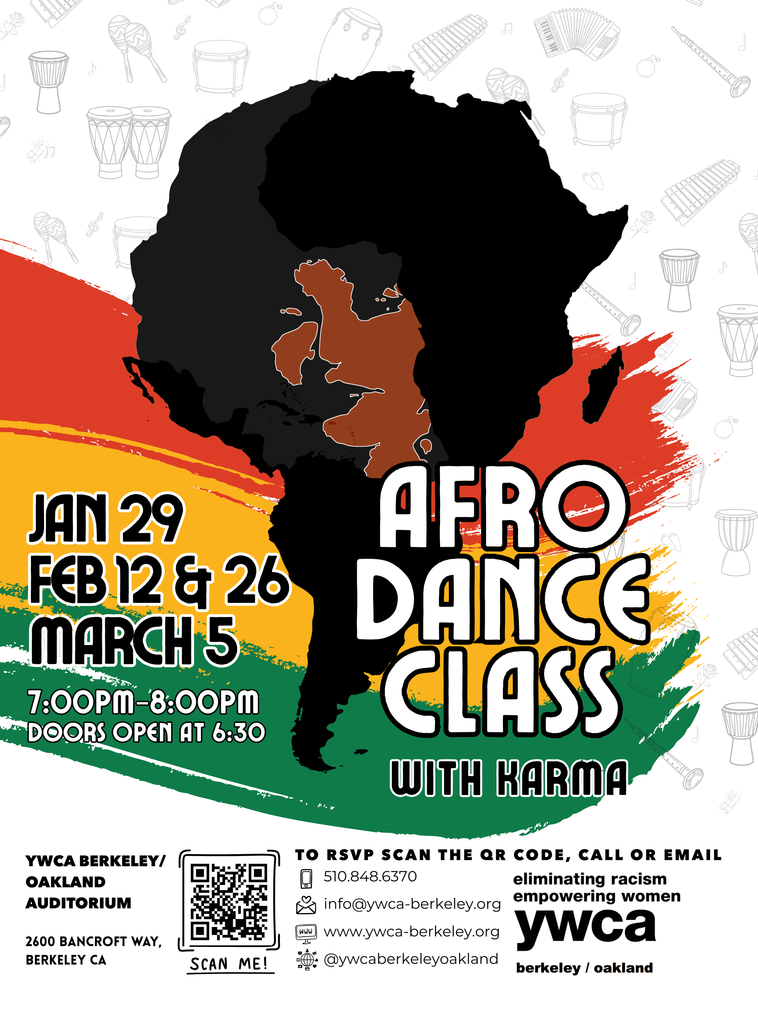 One-hour dance experience that features a variety of dance styles. This class will give you a workout while having a lot of fun dancing to music of the African diaspora.