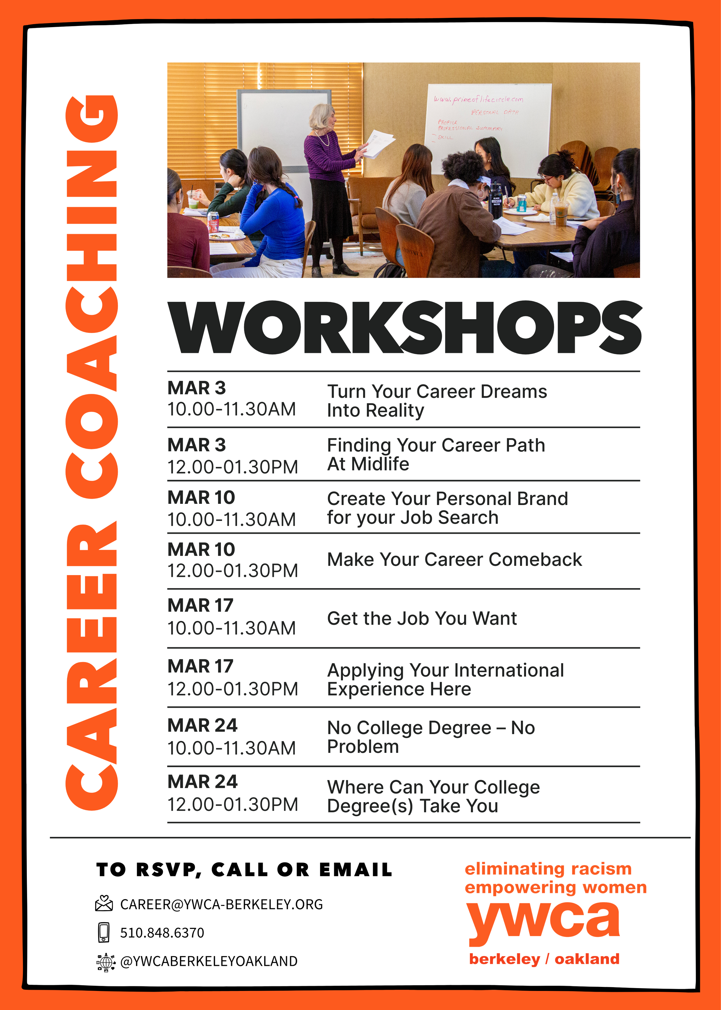 Weekly workshops and personalized 1:1 counseling are available to both YWCA members and non-members if you are interested please fill out this form.